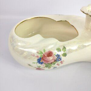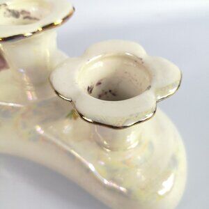 VTG 1950s Candle Holder Planter Iridescent Roses Ivory Unique Handmade Signed