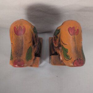 VTG 1950s Ceramic Arnart Creations Dachshund Japan Bookends Orange Rose Floral