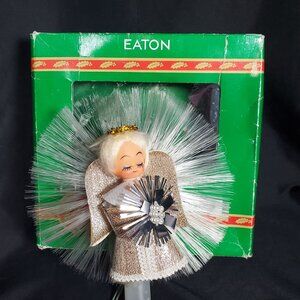 vintage christmas decor, lighted angel topper, retro holiday decoration, fiber optic tree topper, eaton trim a home, 1970s christmas