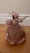 MUSIC DOLL BY BRADLEY THIS VICTORIAN STYLED LADY IS NAMED "BETHANY". THE TOP OF HER BODY AND HANDS UP TO THE ELBOWS ARE MADE OF PORCELAIN. SHE IS WEARING A BEAUTIFUL VICTORIAN PINK SATIN DRESS WITH A PINK LACE OVERLAY WITH GOLD THREADS. WHITE FLOWERS AND BOWS ARE TACKED ON THE LACE SKIRT AND WHITE FLOWERS APPEAR ON THE BODICE. THE HAT IS DECORATED WITH THE SAME MATERIALS. THE BACK HAS A WIND UP KEY AND PLAYS A WALTZ AND THIS DOLL WILL DANCE ON A FLAT SURFACE. A STICKER WITH BRADLEY DOLLS LOS ANGELES, CA IS ON THE BOTTOM. MADE IN KOREA MEASUREMENTS (APPROXIMATE): TALL 8", WIDE 6". 500ml Bottle for size comparison.