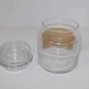 This vintage 1980 T.K.C Aunt Jenny's Poppin Corn 6' Glass Popcorn Kernel Storage Jar Canister with Lid is in great clean condition. Measures 6" from top of lid to bottom of jar - Jar measures 4" from bottom to top lip of jar without lid.