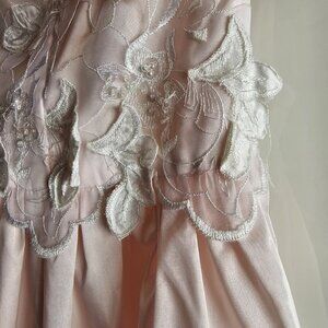 Step into a fairytale with this gorgeous vintage 1980s cocktail dress that exudes pure romance and elegance! 💕 This soft blush pink beauty features a dreamy off-shoulder neckline with a dramatic fold-over collar, accentuated by a delicate floral appliqué at the center—giving it that classic, timeless charm.