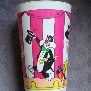 VTG 1990McDonald's Looney Tunes On Stage Top Hat Plastic Drinking Cup GUC "BIN G