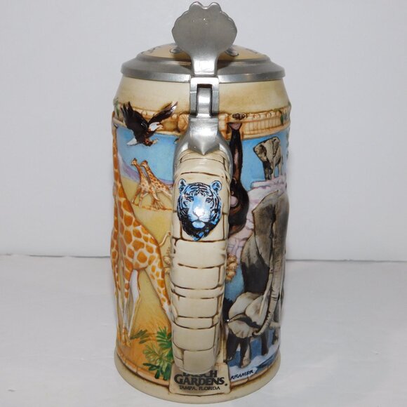 VTG 1993 Busch Gardens Extinction is Forever 7" Lidded Beer Stein Animals