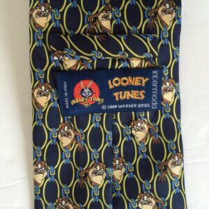 VTG 1996 Tasmanian Devil Mens Tie Silk Navy Blue Looney Tunes Warner Bros Italy
