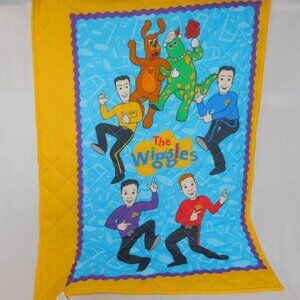This hard to find Vintage 2003 The Wiggles Original Cast Kids Toddler Comforter Bed Spread Wall Hanging is in great clean bright condition. Comforter is 70% Polyester - 30% Cotton - Machine washable. Made by Dan River. Measures 58" x 42" . This has ONLY been used as a wall hanging decor in Childs room - never used as bedding.