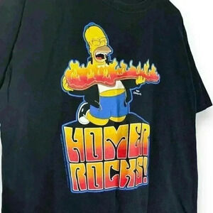 VTG 2009 The Simpsons Homer Rocks Fire Matt Groening T-shirt Short Sleeve Large