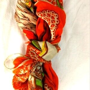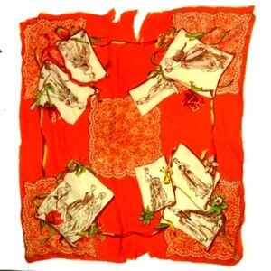 VTG 20s Antique ORANGE Ladies print scarf