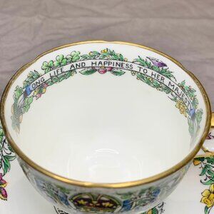 Special Inscription: The inside rim of the teacup features the text: "Long Life and Happiness to Her Majesty."