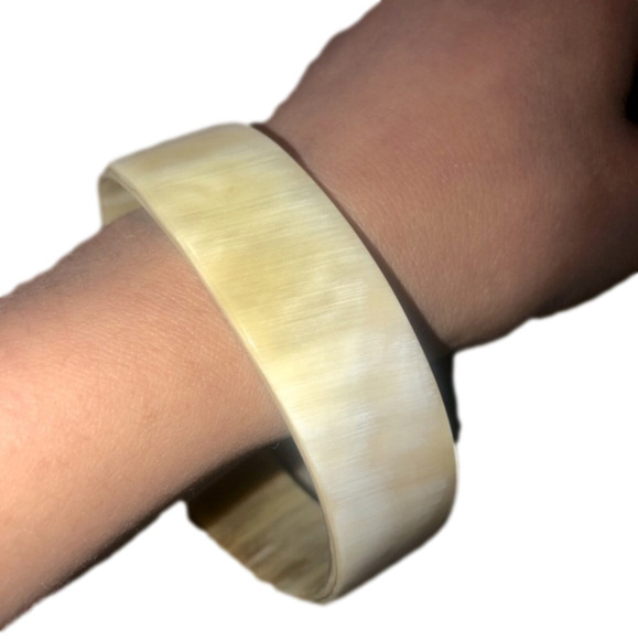 Super cool vintage 60s 1960s curved Horn bracelet, shape has a bit of a wave to it, cream/ white/ off white /specks of brown colour.