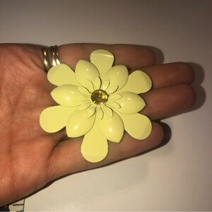 VTG 60s Metal Flower Yellow Painted Enamel Brooch 2.6”
