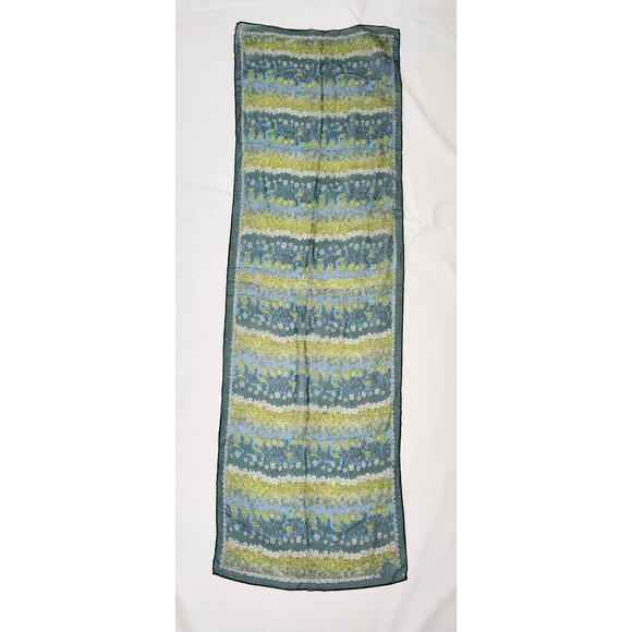 Vera scarf, floral scarf, vintage scarf, lightweight scarf, green scarf, blue scarf, retro scarf, long scarf, Vera Neumann design, signed scarf, Vera Neumann, Vintage, Neck Scarf, Silk Chiffon, Sheer Scarf, Teal, Chartreuse, Light Blue, Fashion Scarf, Designer Scarf, Spring Flowers, Fashion Accessory