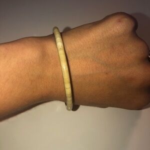 Vtg 70s Brass & Natural Bone Inlay Boho Stacking Bangle 8” / 2.6” Diameter