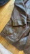 Stylish brown leather jacket with a classic design. Features a button closure and pockets.