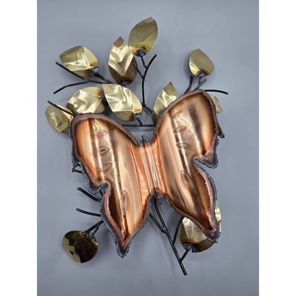 VTG 70's MCM Brutalist Copper Butterfly & Leaves Wall Art Copper Metal Wall Art