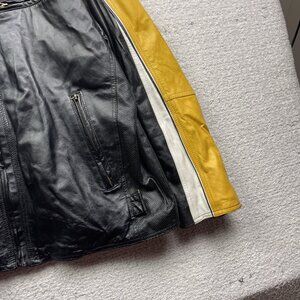 VTG 725 Original Biker Leather Bomber Jacket Motorcycle Black /Yellow Men L Read