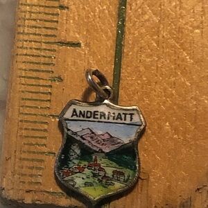 VTG 800 Silver & Enamel Andermatt Travel Sheild Souvenir Charm Bracelet Charm