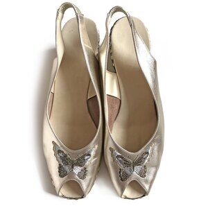 VTG 80s 90s Italian Gold Leather Butterfly Embroidered Wedge Shoes Size 38 - 7.5