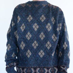 VTG 80s London Fog Blue Taupe Argyle Eclectic Grandpa Wool Crew Neck Sweater L