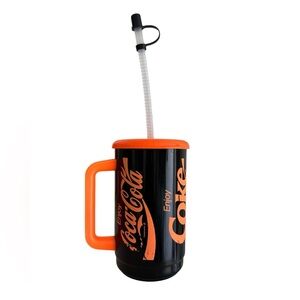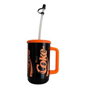 VTG ‘80s Retro Orange & Black Coca-Cola Drinking Cup with Bending Straw