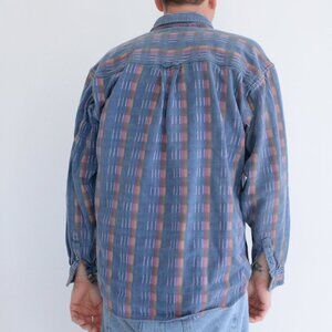 VTG '90S Ever Blue Find General Blue Red Thick Cotton 3D Pattern Western Shirt