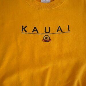 VTG '90S Kauai Hawaii Embroidered Travel Yellow Pre-Shrunk Crewneck Sweater XXL