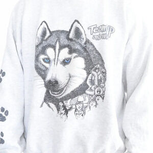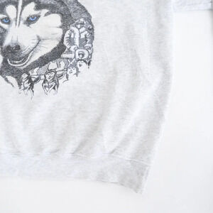 VTG 90'S Little Brownie Originals Gray Huskies Portrait Boxy Crew Neck Sweater