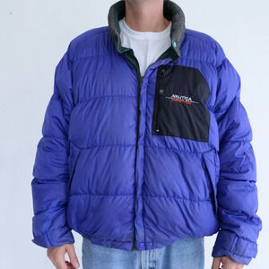The Vintage 90s Nautica Elevation 8000 Reversible Puffer Jacket is a versatile and stylish piece that embodies the rugged, adventurous spirit of the '90s. With its bold blue and green colorway, this zip-up winter jacket not only makes a statement but also provides practical functionality for cold weather. The reversible design offers two looks in one, allowing you to switch up your style with ease, whether you’re hitting the slopes or navigating the city streets.