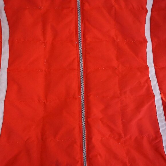 Stay warm in true vintage style with this bold red Eddie Bauer goose down puffer vest from the 1990s. Featuring premium down insulation, this zip-up vest is designed for maximum warmth without sacrificing mobility. The faux fur-lined hood adds extra comfort and winter-ready flair.