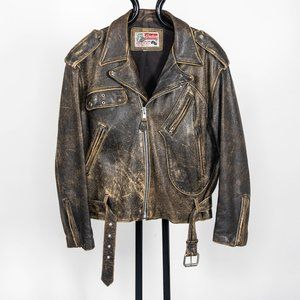 Vintage 90’s Indian Motorcycle Patch Brown Leather Rider Jacket Rare