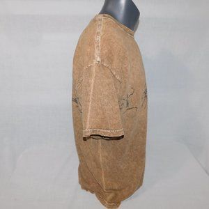 This Vintage 90s Stone Aged Rockwear Mens Large Brown acid washed shirt with Petroglyphs Native Graphics is in great clean condition. Shirt is 100% Cotton - Machine washable. Graphics are on front and wrap around to the back.