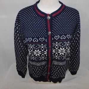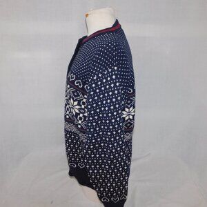 VTG 90s Willow Ridge Womens L Blue White Fair Isle Snowflake Cardigan Sweater