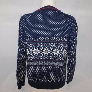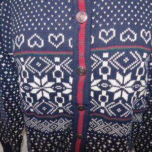 This beautiful vintage 90s Willow Ridge Womens Large White Blue Red Snowflake Hearts Fair Isle Cardigan Sweater is in great clean bright condition. Sweater is 100% Cotton - Hand wash - lay flat to dry. A beautiful addition to any winter wardorbe.
