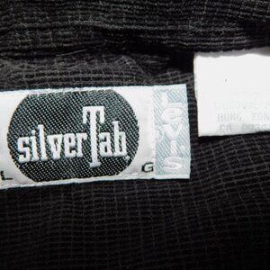 This Womens Large Vintage Levi's Silver Tab Black Corduroy Full Zip Fitted jacket is in great clean condition. Jacket is 100% Cotton - Machine washable. Features 2 front small chest button pockets.