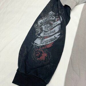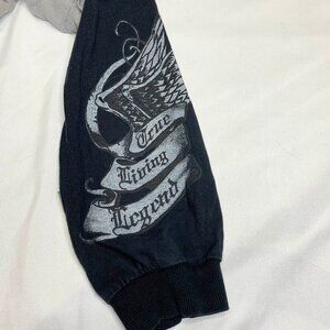 Design: Features a "True Living Legend" graphic on the front and back with intricate wing and crown designs. Sleeves also have a banner graphic.
