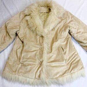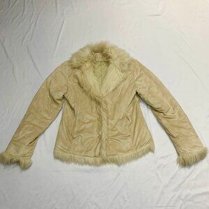 VTG 90s Y2K Roxy Suede Faux Fur Trim Penny Lane Almost Famous Boho Jacket Sz L