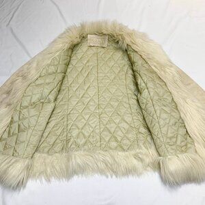 Details: The jacket is lined with a soft quilted interior and finished with plush faux fur trim on the collar, cuffs, and bottom hem.