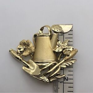 Vintabe A.J.C Shiny & matte gold watering can gardening gardener theme brooch.