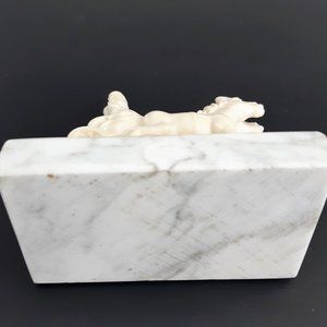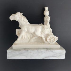 VTG Alabaster Marble Statue Figurine Roman Warrior Chariot Horse Italy Signed