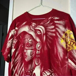 🔥VTG All Over Prints Indian T-shirt Size large red/white Mexico SACBE RIVIERA