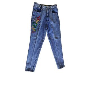 VTG Angel Drive Womens 15/16 Blue Acid Wash 80s High Rise Zip Fly Tapered Jeans