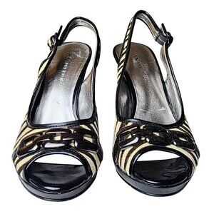 VTG Anne Klein Real Fur Leather Zebra Print Sling Back Peep Toe Heels Size 7.5