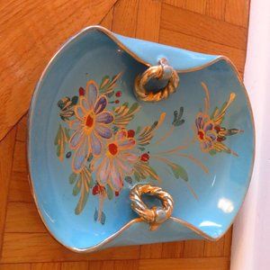 VTG Antique italian folded tray ,hand painted, gold gilded ,flowers, made in Italy