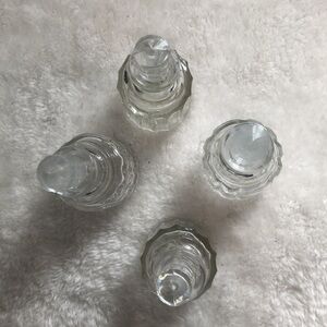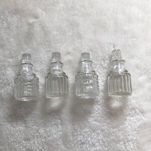 VTG Apothecary bottles scents, vinegar, oils, glass England toppers set (4) perfume many uses