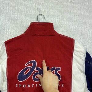 VTG Asics Sporting Gear Windbreaker Jacket Red / Blue Full Zip Men M Back Print