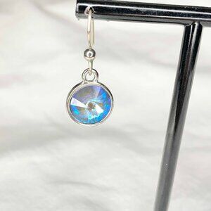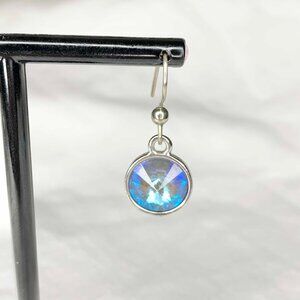 VTG Aurora Borealis Crystal Drop Earrings Sunburst Back Handmade Dangle Jewelry