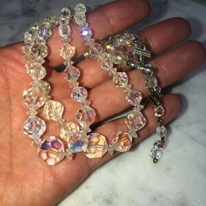 Vintage Aurora borealis crystal beads - graduated sizes - multi 2 strand necklace with a bit of room to adjust the necklace a little longer at the end.