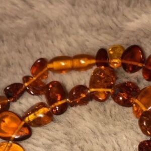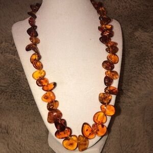 Gorgeous and large Baltic amber stone necklace with screw in clasp. Necklace is large natural chunks of amber strung - please note due to the nature of how amber is made in nature there is putting and natural inclusions writhing the stones which just adds to the beauty and uniqueness of amber!