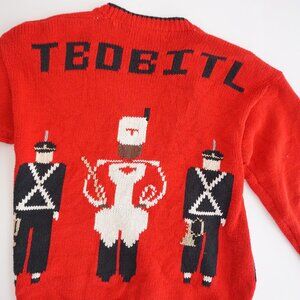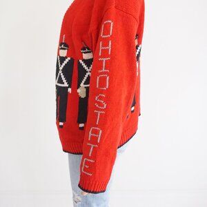 This vintage BellePointe knit cardigan is a showstopper for anyone who loves bold, collectible vintage. A true Retro 80s/90s gem, it features the iconic Ohio State marching band design — complete with uniformed drummers and a drum major on the back — and “OHIO STATE” and “SLOOPY” knit down each sleeve. It’s equal parts Collegiate classic and Kitschcore fun, made for those who live for nostalgia and standout knits.