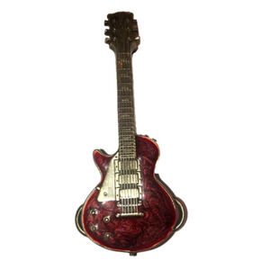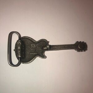 Really neat vintage bergamot brass works vintage belt buckle - red enamel Stratocaster electric guitar